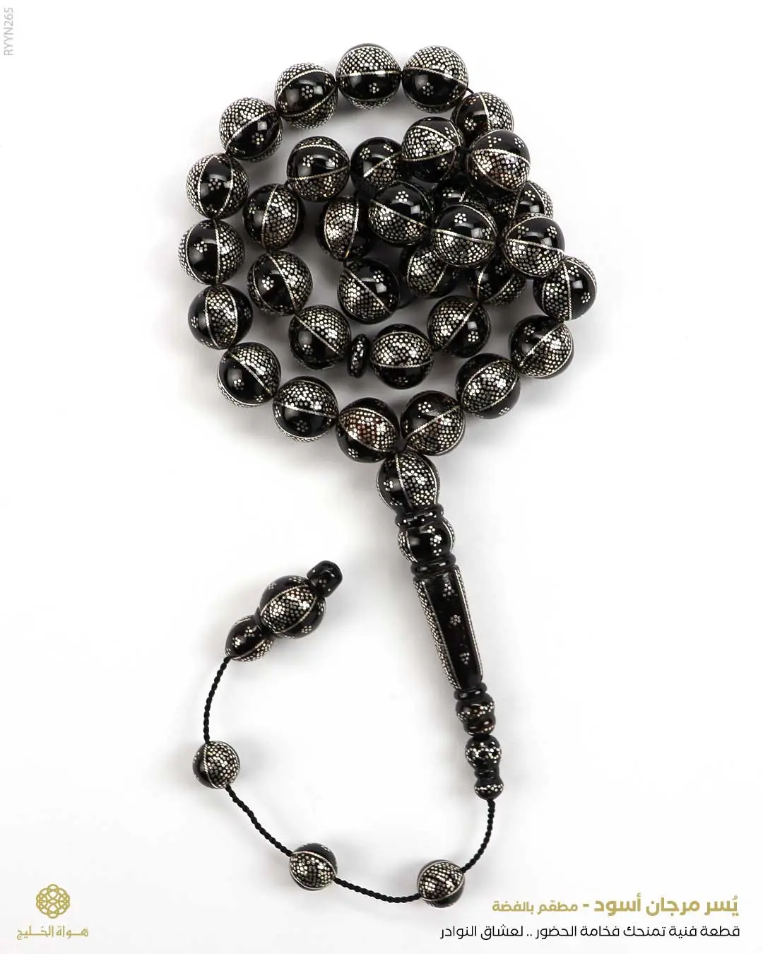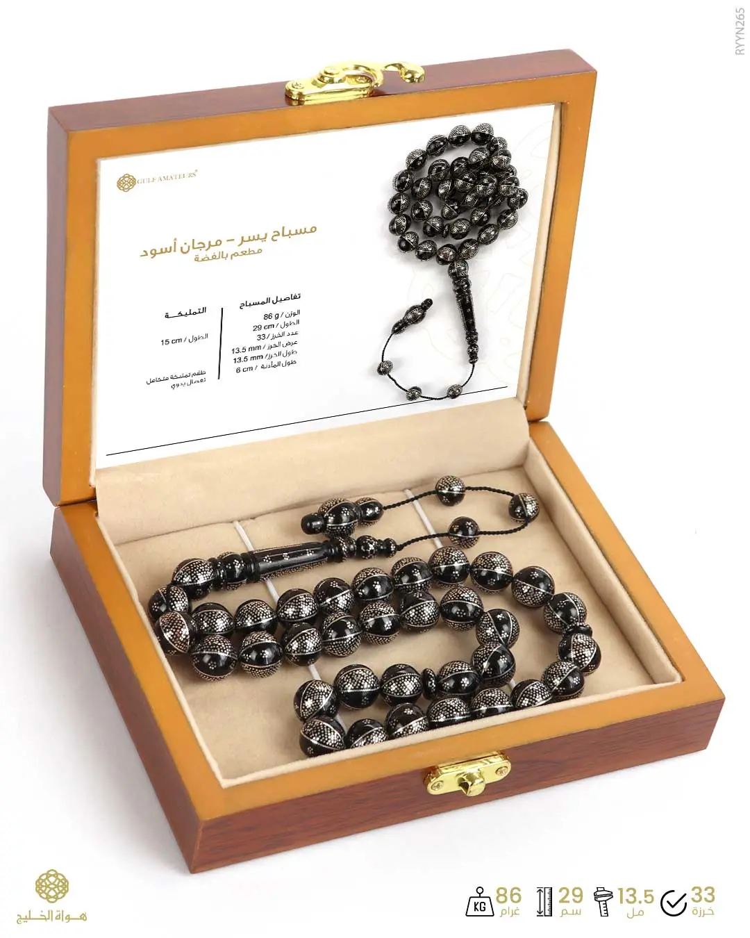 الرئيسيةمسباح المرجان (اليسر)مسباح المرجان (اليسر)الوصفمسباح طبيعي من اليسر المرجان الأسود لون أسود منقوش و مطعم بالفضة بعدد 39 خرزة دائرية كبيرةيتوّجه طقم تمليكة متكامل مزخرف و منقوش بتفصال يدوي فخم التقديم في علبة خشب فاخرة خاصة للحفظ و الإهداء