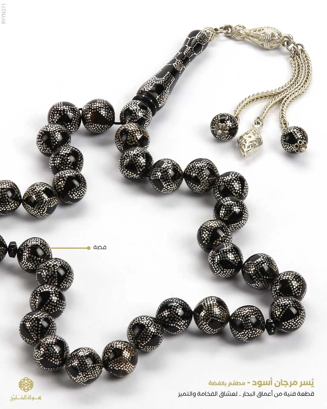 الرئيسيةمسباح المرجان (اليسر)مسباح المرجان (اليسر)الوصفمسباح طبيعي من اليسر المرجان الأسود لون أسود منقوش و مطعم بالفضة بعدد 33 خرزة دائرية كبيرة يتوّجه كركوش فاخرمصنوع من الفضة الايطالية عيار 925 المشغولة يدوياً صياغة تركية التقديم في علبة خشب فاخرة مع كرت إهداء فخم