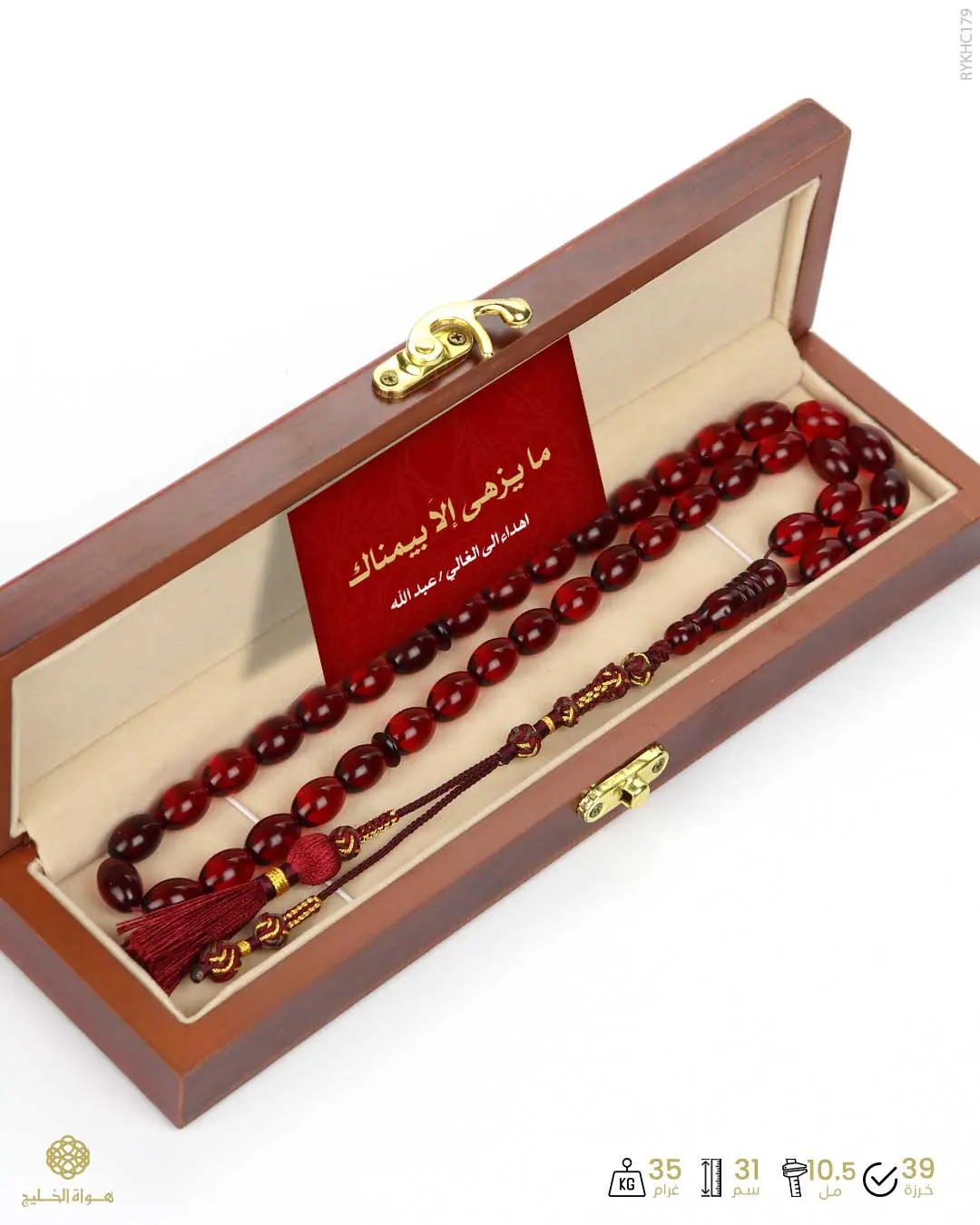 الرئيسيةكهرمان كاريبيكهرمان كاريبيالوصفمسباح فاخر من الكهرمان الكاريبي بعدد 39 خرزة بيضاوية متوسطة شفافة فواحة بالعنبر يتألق بكركوش فاخرمصنوع من أجود الخيوط المشغولة يدوياً بمهارة وأناقة نقدم المسباح في علبة خشب أنيقة مجهزة بكرت إهداء فخم
