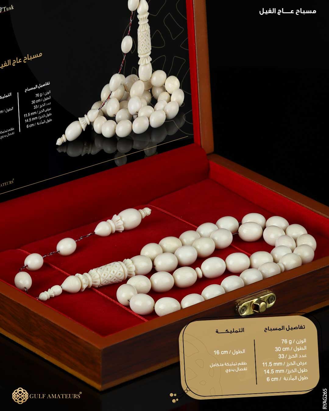 الرئيسيةمسباح عاج الفيلمسباح عاج الفيل0الوصفمسباح من عاج الفيل لونه أبيض عاجي صاك بعدد 33 خرزة بيضاوية متوسطة تشبه بيض الحمام مجهز ب فواصل مع طقم تمليكة فاخرخراطة و تفصال يدوي قمة في الأناقة التقديم في علبة خشبية فاخرة للحفظ و الإهداء