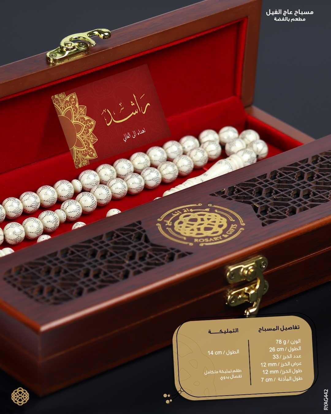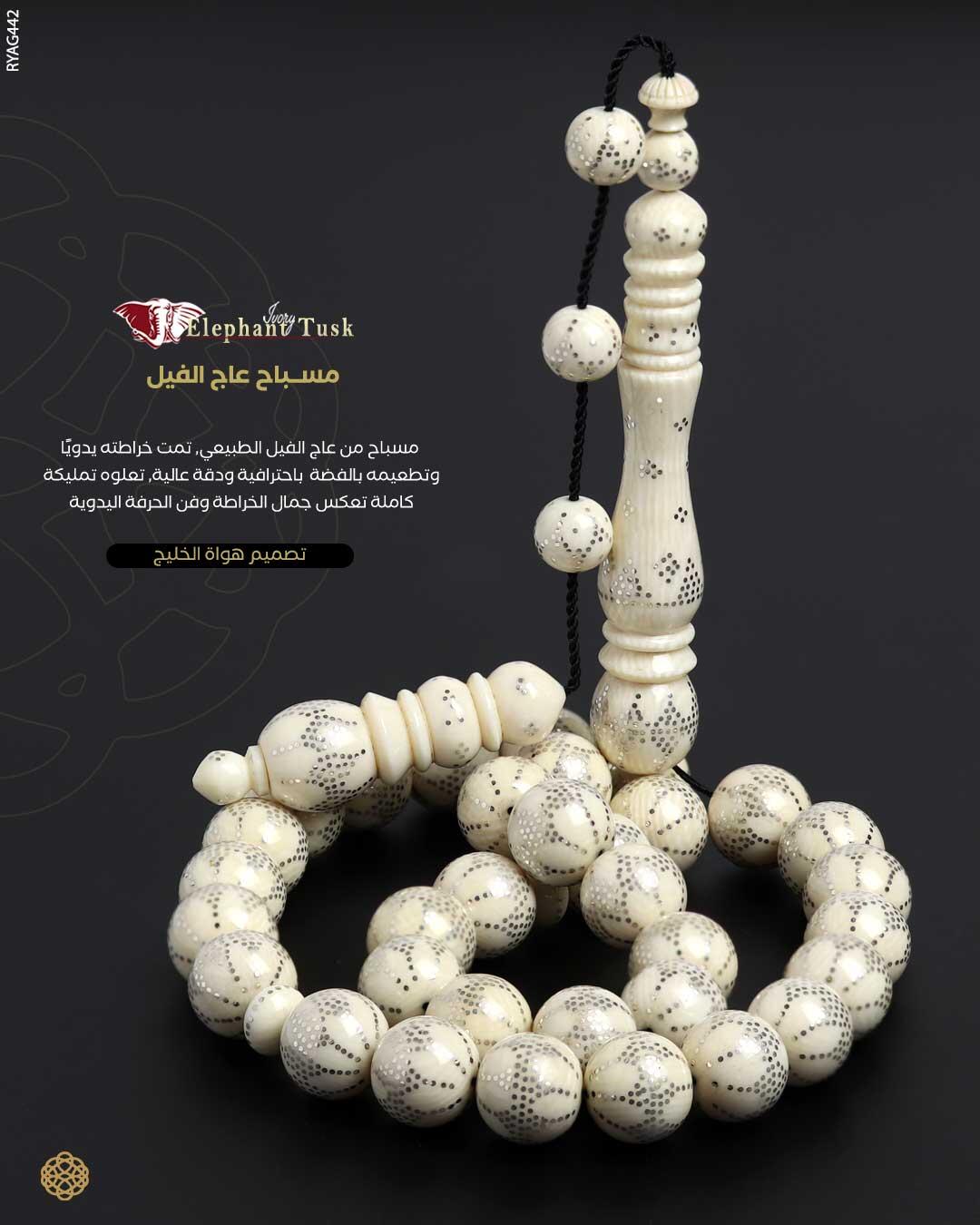 الرئيسيةمسباح عاج الفيلمسباح عاج الفيل0الوصفمسباح من عاج الفيل لونه أبيض عاجي معتق منقوش ومطعم يدوياً بالفضة بعدد 33 خرزة دائرية متوسطةمجهز بطقم تمليكة فاخر ومتكامل منقوش بخراطة وتفصال يدوي التقديم في علبة أنيقة خاصة للحفظ والإهداء