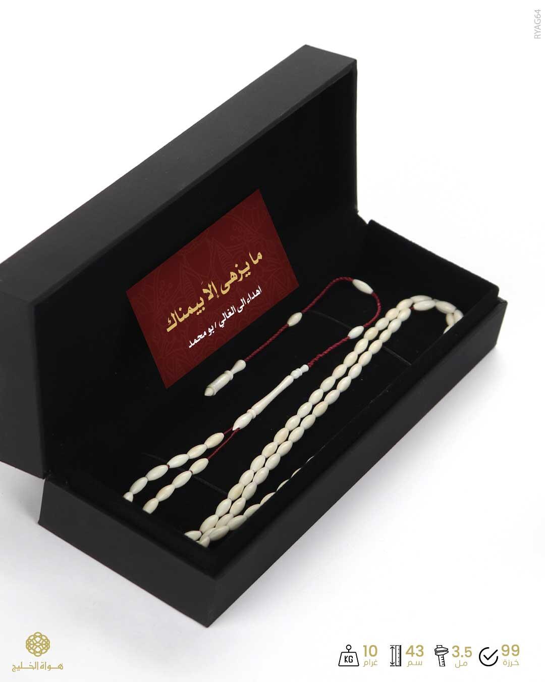 الرئيسيةمسباح عاج الفيلمسباح عاج الفيل0الوصفمسباح من عاج الفيل لونه أبيض عاجي معتق بعدد 99 خرزة صنوبرية بملمس فخم مجهَز بطقمتمليكة فاخر خراطة و تفصال يدوي التقديم في علبة أنيقة خاصة للحفظ والإهداء