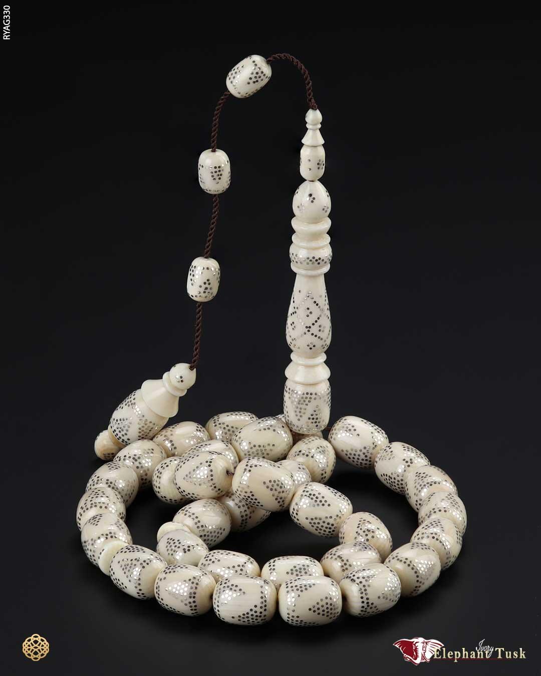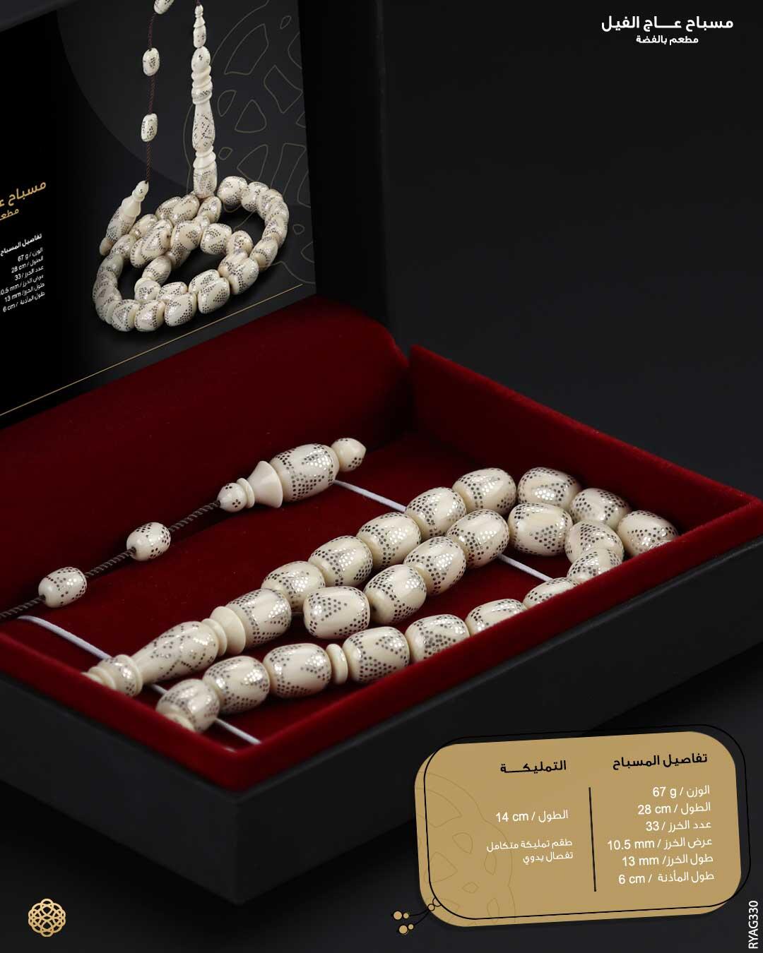 الرئيسيةمسباح عاج الفيلمسباح عاج الفيل0الوصفمسباح من عاج الفيل لونه أبيض عاجي معتق منقوش ومطعم يدوياً بالفضة بعدد 33 خرزة متوسطةمجهز بطقم تمليكة فاخر ومتكامل منقوش بخراطة وتفصال يدوي التقديم في علبة أنيقة خاصة للحفظ والإهداء