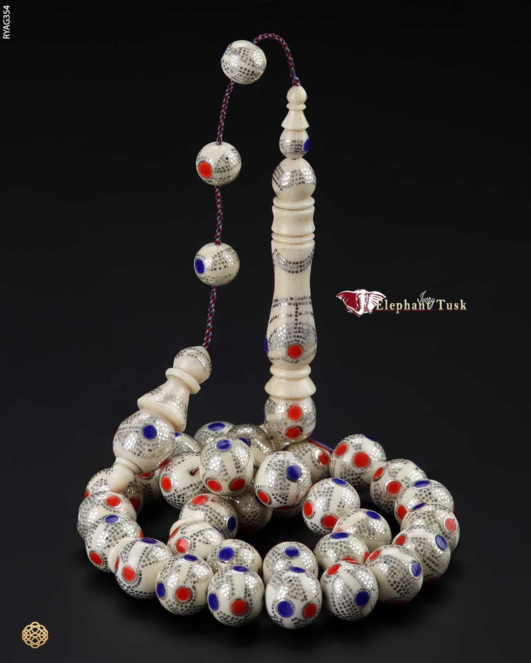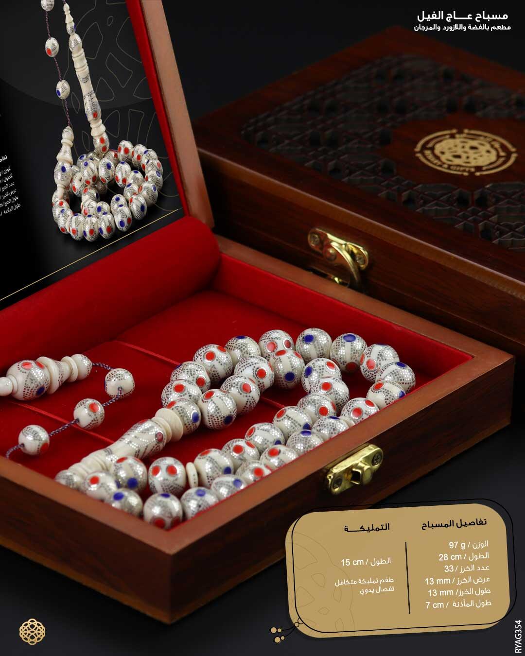 الرئيسيةمسباح عاج الفيلمسباح عاج الفيل0الوصفمسباح من عاج الفيل لونه أبيض عاجي معتق منقوش ومطعم يدوياً بالفضة والمرجان واللازورد بعدد 33 خرزة دائرية متوسطةمجهز بطقم تمليكة فاخر ومتكامل منقوش بخراطة وتفصال يدوي التقديم في علبة أنيقة خاصة للحفظ والإهداء