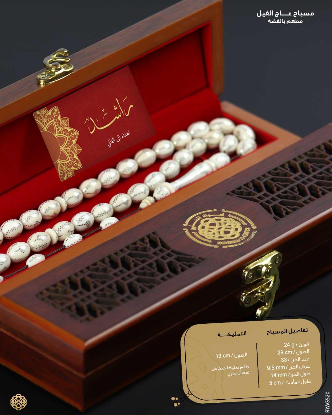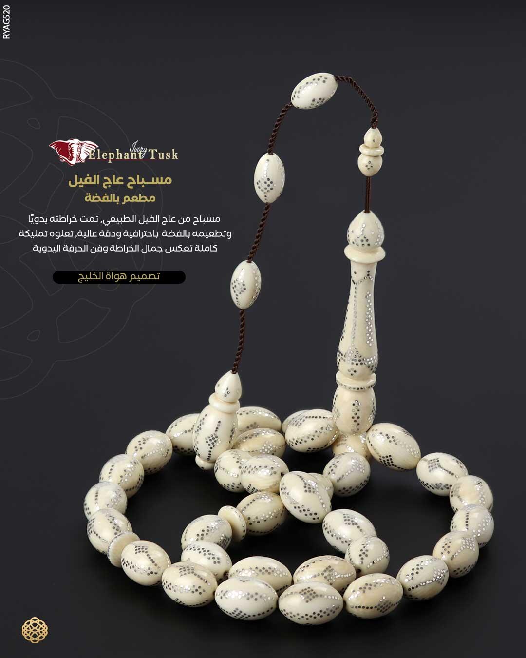الرئيسيةمسباح عاج الفيلمسباح عاج الفيل0الوصفمسباح من عاج الفيل لونه أبيض عاجي معتق منقوش ومطعم يدوياً بالفضة بِعدد 33 خرزة بيضاوية مجهز بطقم تمليكة فاخر ومتكامل منقوش بخراطة وتفصال يدوي التقديم في علبة أنيقة خاصة للحفظ والإهداء