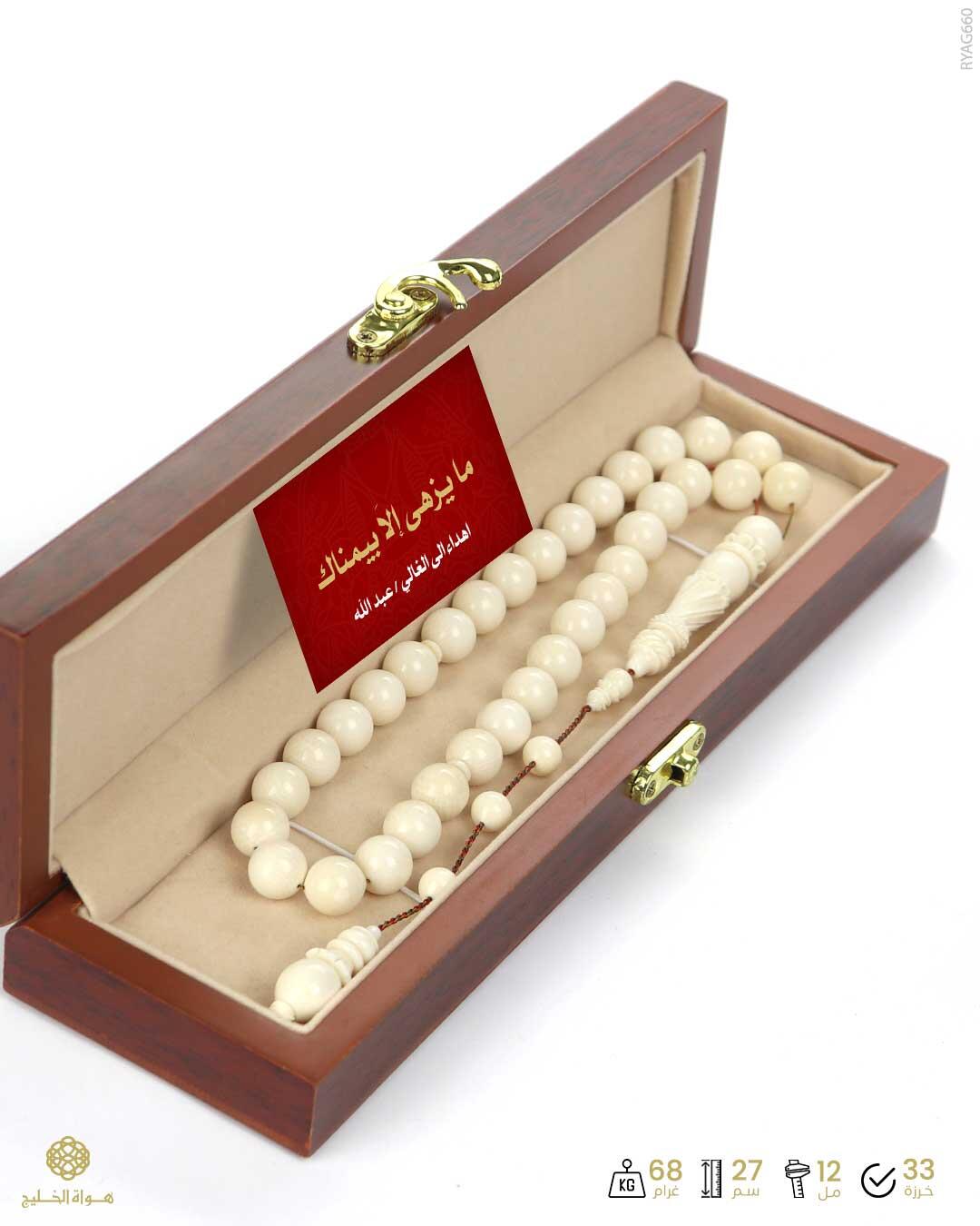 الرئيسيةمسباح عاج الفيلمسباح عاج الفيل0الوصفمسباح من عاج الفيل لونه أبيض عاجي معتق بعدد 33 خرزة دائرية بملمس فخم تشابه بيض الحمام مجهَزبطقم تمليكة فاخر مزخرف خراطة و تفصال يدوي التقديم في علبة أنيقة خاصة للحفظ والإهداء