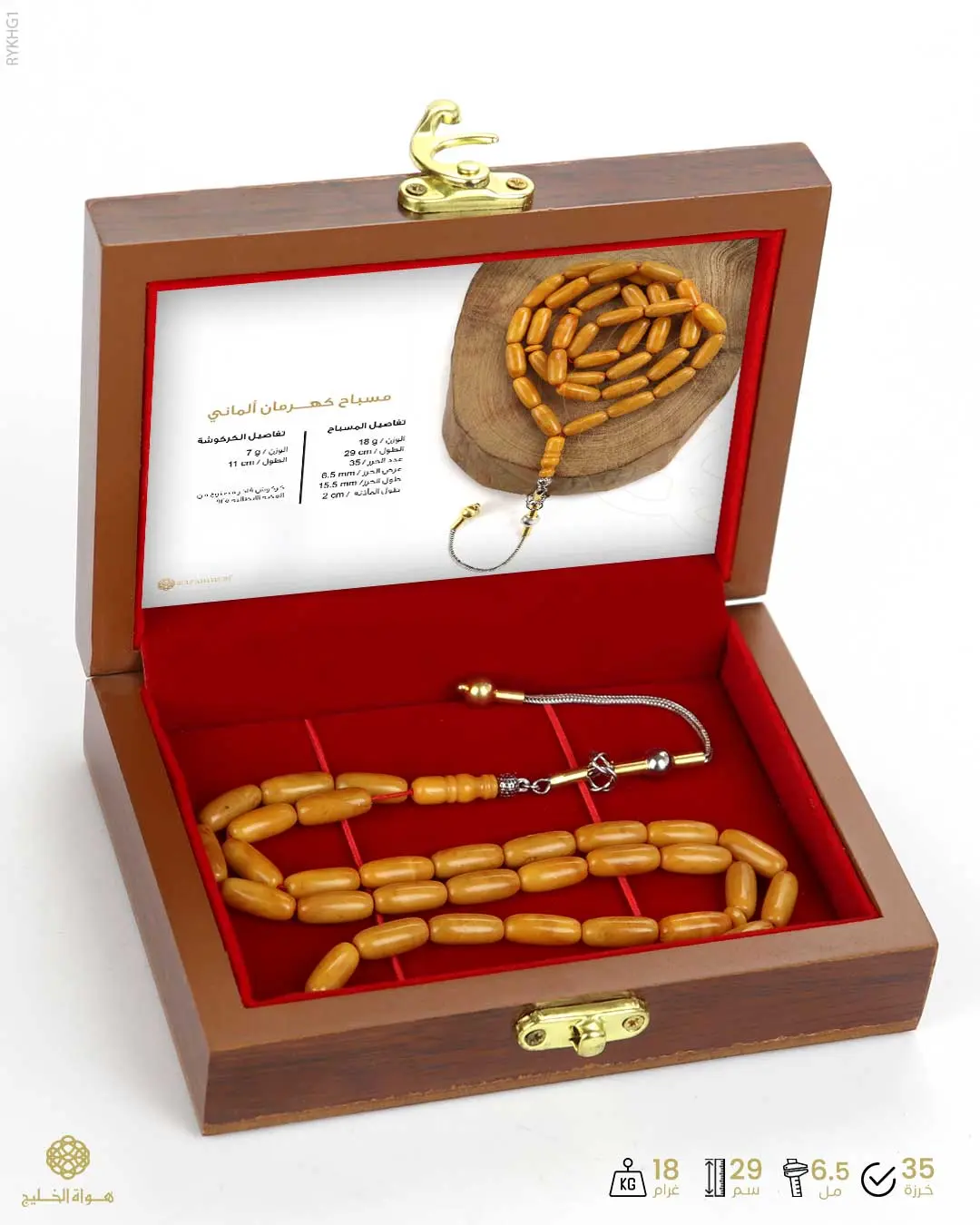 الرئيسيةكهرمان الماني كهرمان الماني 0الوصفمسباح فاخر من الكهرمان الألماني الطبيعي لونه أصفر كركمي معرق بعدد 35 خرزة طولية متوسطةفوّاحة بالعنبر يتألق بكركوش فاخر من الفضة الايطالية 925 نقدم المسباح في علبة خشبية فاخرة مع كرت إهداء فخم