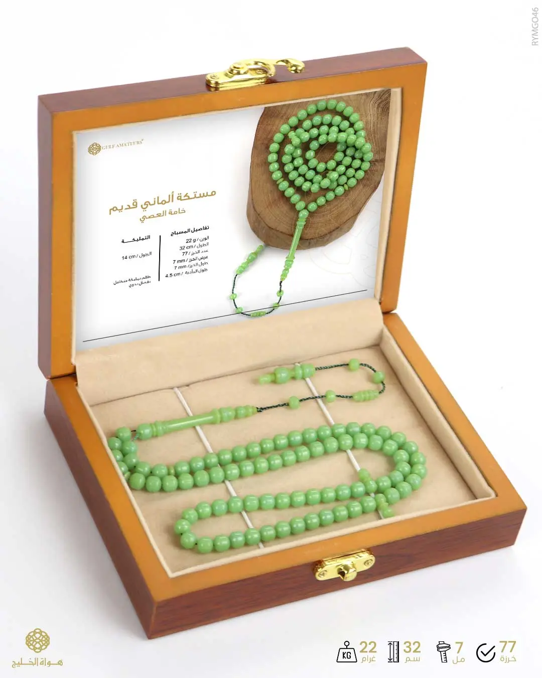 الرئيسيةمسباح مستكة المانيمسباح مستكة المانيالوصفمسباح من المستكة الألماني صب قديم من خامة العصي يتألق بلون أخضر ربيعي مميز بعدد 77 خرزة صغيرةمجهز بطقم تمليكة فاخر متكامل الأركان بتفصال يدوي نقدم المسباح في علبة خشب فاخرة للحفظ و الإهداء