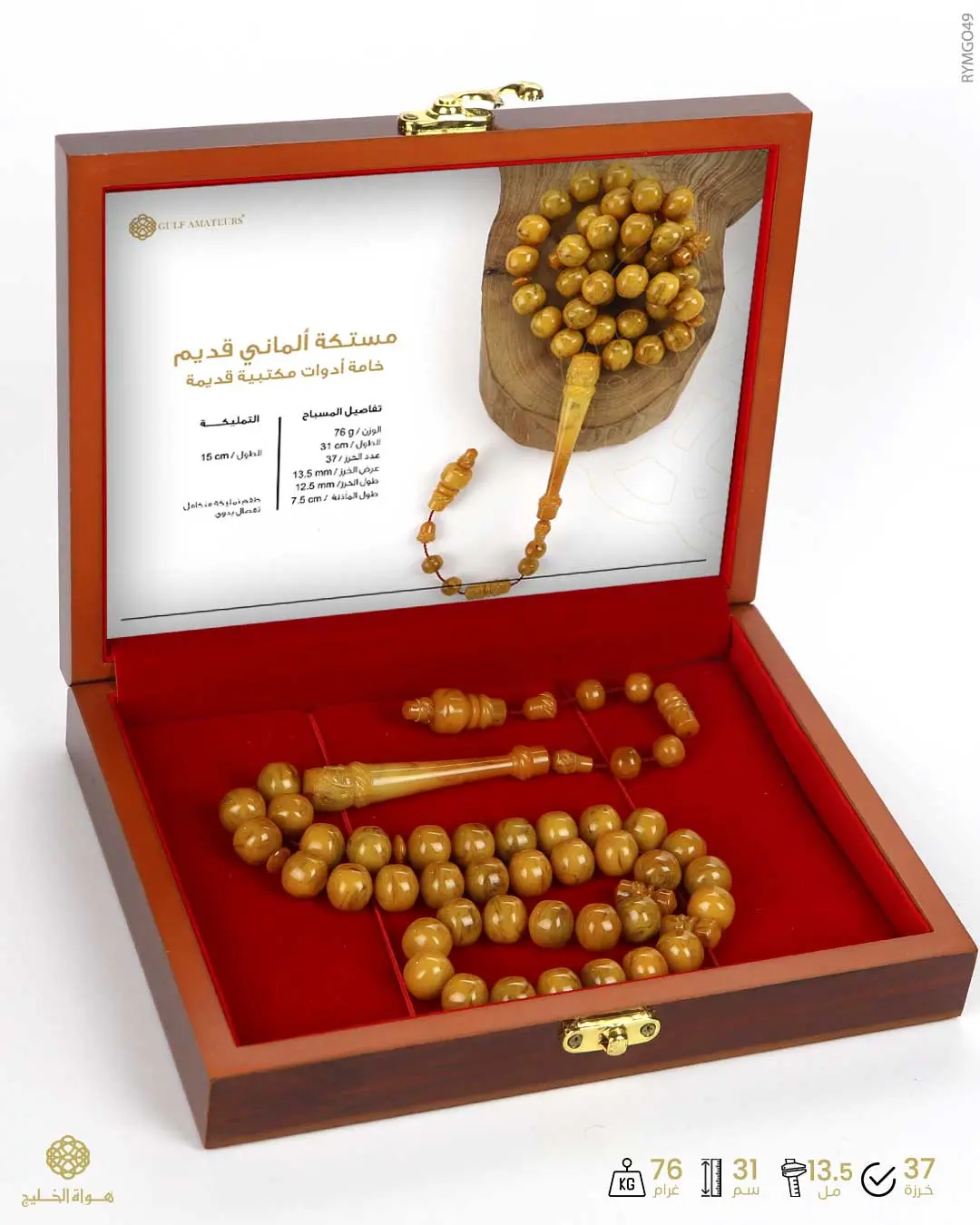 الرئيسيةمسباح مستكة المانيمسباح مستكة الماني0الوصفمسباح من المستكة الألماني صب قديم من خامة الأدوات المكتبية القديمة يتألق بلون كراميلي معرق بعدد 37 خرزة متوسطةمجهز بطقم تمليكة فاخر متكامل الأركان بتفصال يدوي نقدم المسباح في علبة خشب فاخرة للحفظ و الإهداء