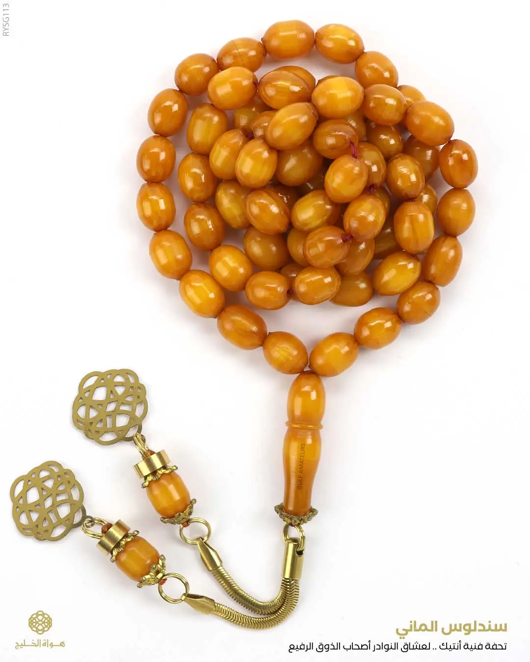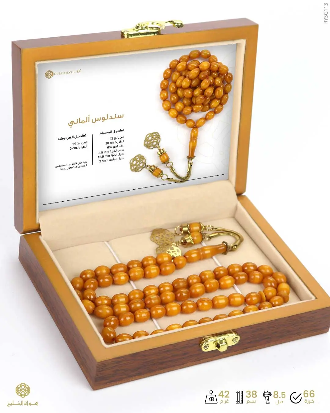 الرئيسيةمسباح سندلوس المانيمسباح سندلوس المانيالوصفمسباح من السندلوس الألماني يتألق بلون كركمي معرق أنتيك بعدد 66 خرزة بيضاوية متوسطةمجهز بكركوش فاخر مطلي مزين بشعار هواة الخليج تفصال يدوي نقدم المسباح في علبة خشب فاخرة للحفظ و الإهداء