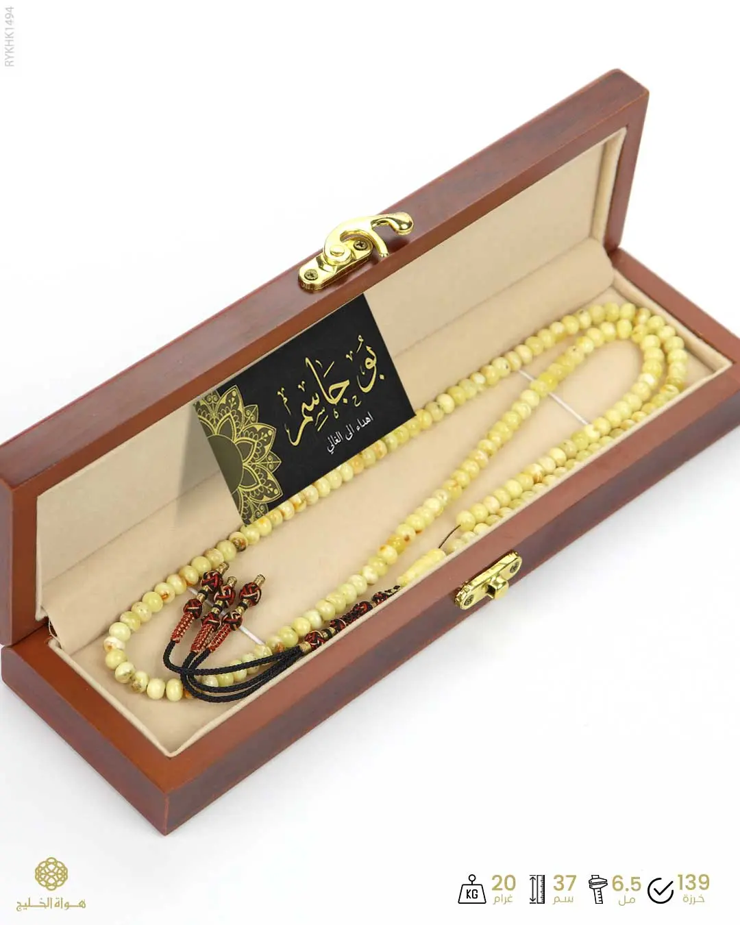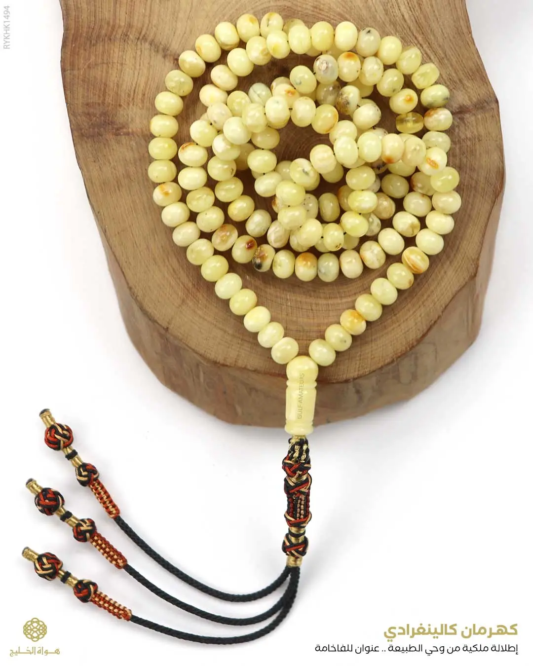 الرئيسيةكهرمان كالينغرادي كهرمان كالينغرادي الوصفمسباح من الكهرمان الكالينغرادي الطبيعي لونه كريمي موشح عسلي بعدد 139 خرزة ذروية فوّاحة بالعنبريتدلل بكركوش مبتكر من أجود الخيوط المشغولة يدوياً نقدم المسباح في علبة خشب فاخرة خاصة للحفظ و الإهداء