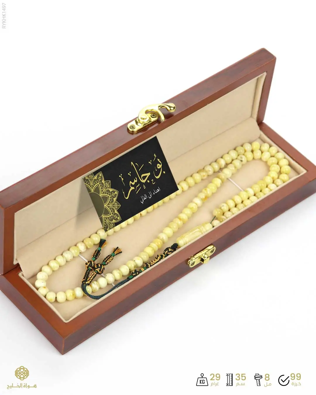 الرئيسيةكهرمان كالينغرادي كهرمان كالينغرادي الوصفمسباح من الكهرمان الكالينغرادي الطبيعي لونه كريمي عسلي بعدد 99 خرزة ذروية فوّاحة بالعنبريتدلل بكركوش مبتكر من أجود الخيوط المشغولة يدوياً نقدم المسباح في علبة خشب فاخرة خاصة للحفظ و الإهداء