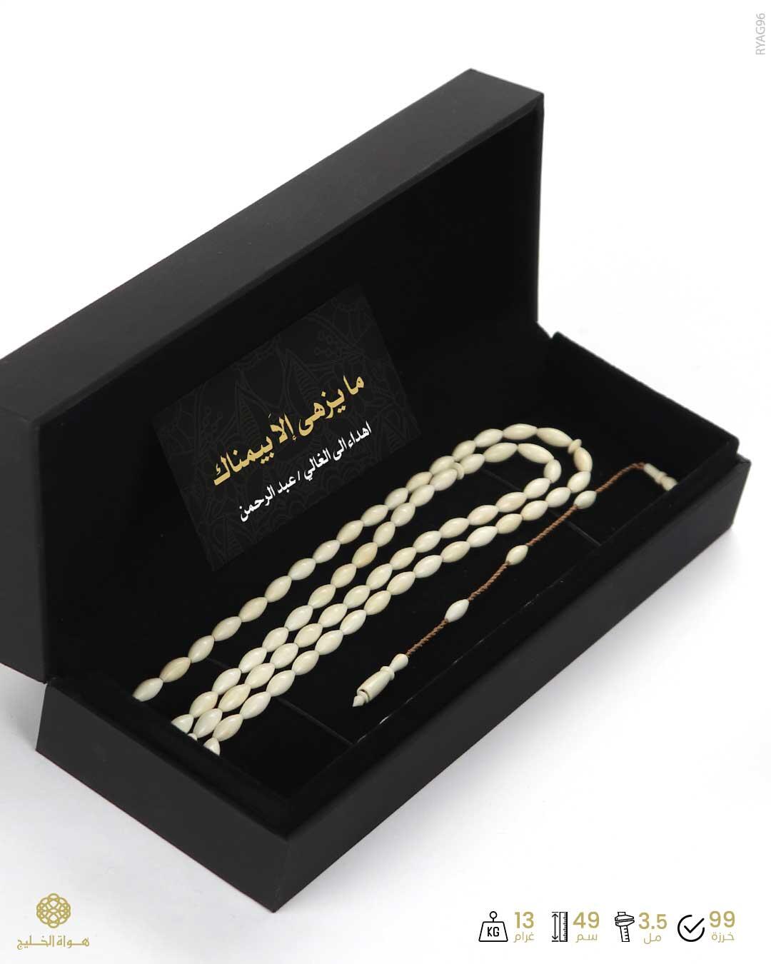 الرئيسيةمسباح عاج الفيل مسباح عاج الفيل 0الوصفمسباح من عاج الفيل لونه أبيض عاجي معتق بعدد 99 خرزة صنوبرية بملمس فخم مجهَز بطقمتمليكة فاخر خراطة و تفصال يدوي التقديم في علبة أنيقة خاصة للحفظ والإهداء