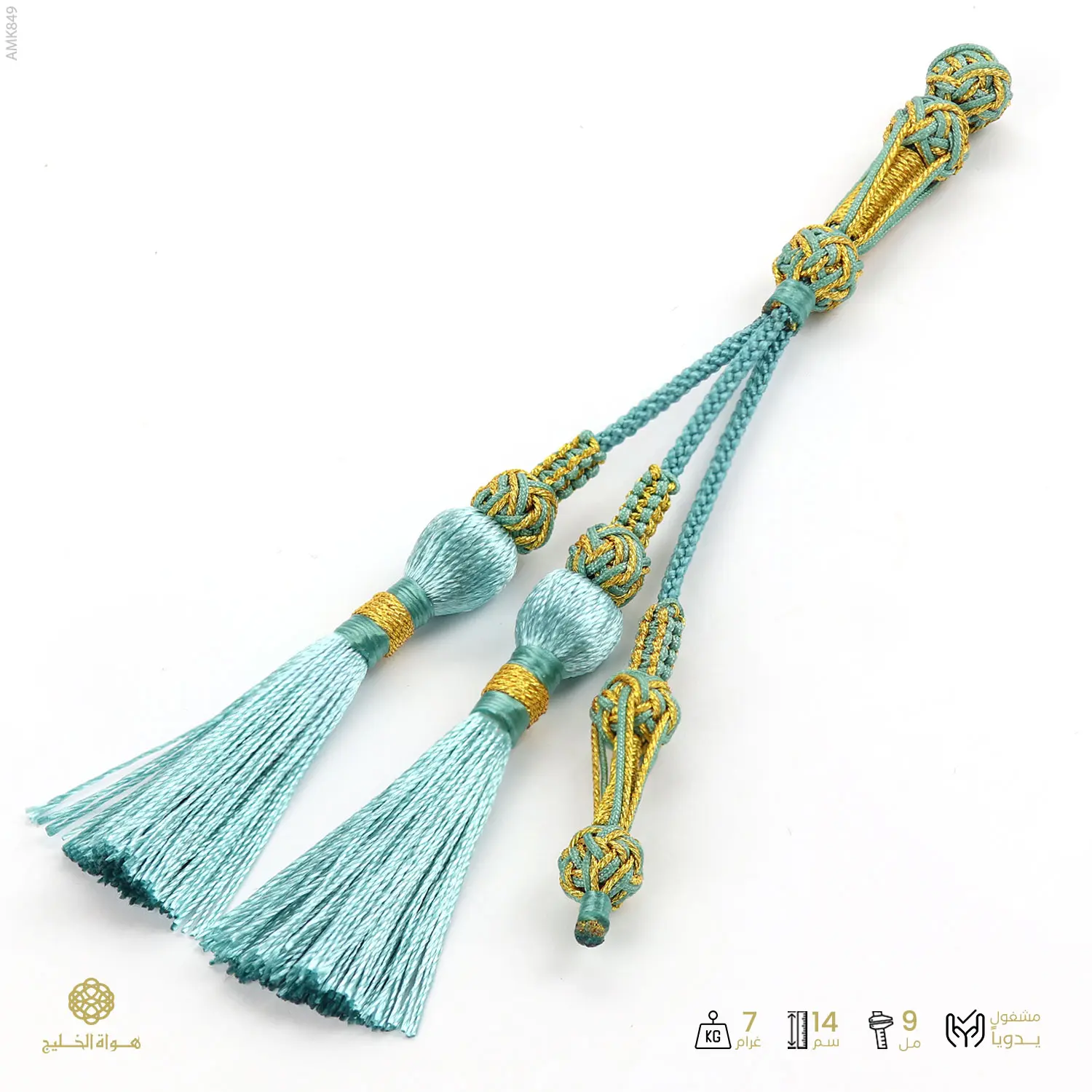 الرئيسيةكركوش محبوك يدوياًكركوش محبوك يدوياًالوصفكركوش فاخر يتميز بحياكته اليدوية و شكله الجمالي المحبوك من أجود أنواع الخيوطبدقة و احترافية عالية المستوى يتألق بتصميم متفرع بثلاثة خطوط باللون التركواز الملكي المزين بالزري الذهبي
