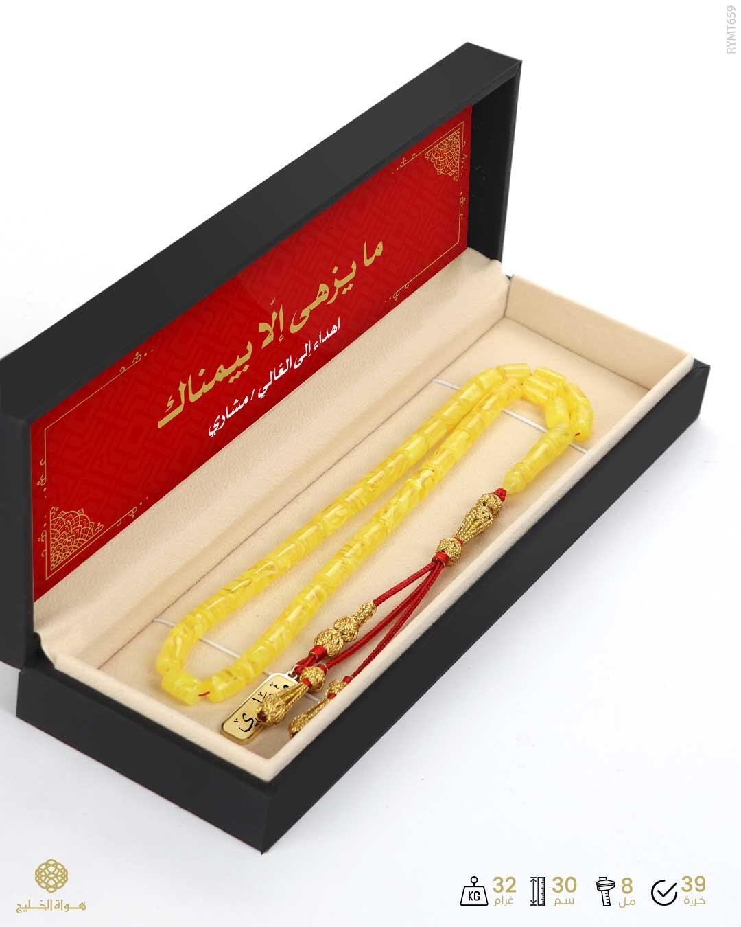 الرئيسيةمسباح مستكة كهرماني مسباح مستكة كهرماني 0الوصفمسباح من المستكة الكهرماني اللون أصفر مغيم نصف شفاف بعدد 39 خرزة صندوقية يتألق بكركوش فاخرمحبوك يدوياً من اجود الخيوط مزين بشعار اسم محفور على الوجهين يقدم بعلبة هدايا أنيقة مع كرت إهداء فخم