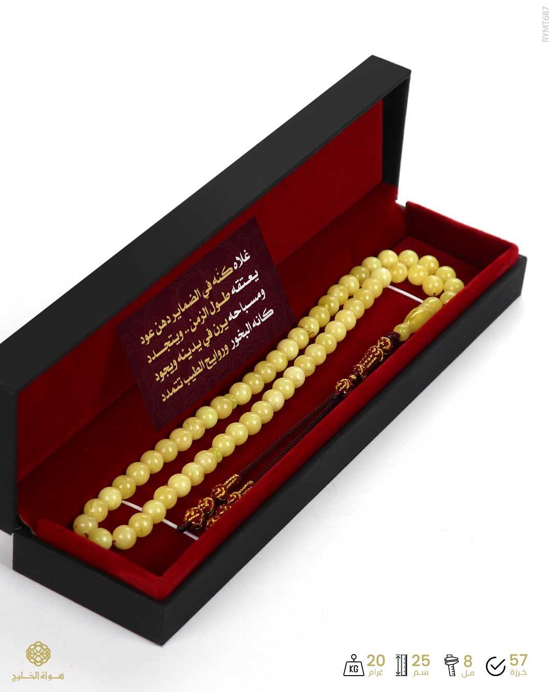 الرئيسيةمسباح مستكة كهرماني مسباح مستكة كهرماني 0الوصفمسباح من المستكة لونه كريمي معرق بعدد 57 خرزة دائرية يتألق بكركوش فاخر محبوك يدوياًمن اجود الخيوط بمهارة واتقان يقدم بعلبة هدايا أنيقة مع كرت إهداء فخم
