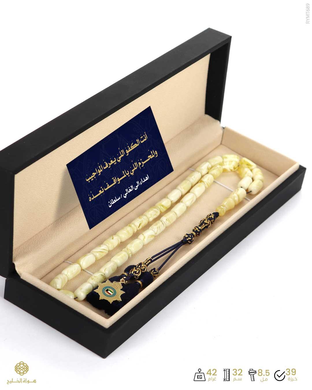 الرئيسيةمسباح مستكة كهرماني مسباح مستكة كهرماني 0الوصفمسباح من المستكة لونه كريمي موشح بعدد 39 خرزة كبسولية يتألق بكركوش فاخر محبوك يدوياًمن اجود الخيوط مزين بشعار من اختيارك محفور على الوجهين يقدم بعلبة هدايا أنيقة مع كرت إهداء فخم