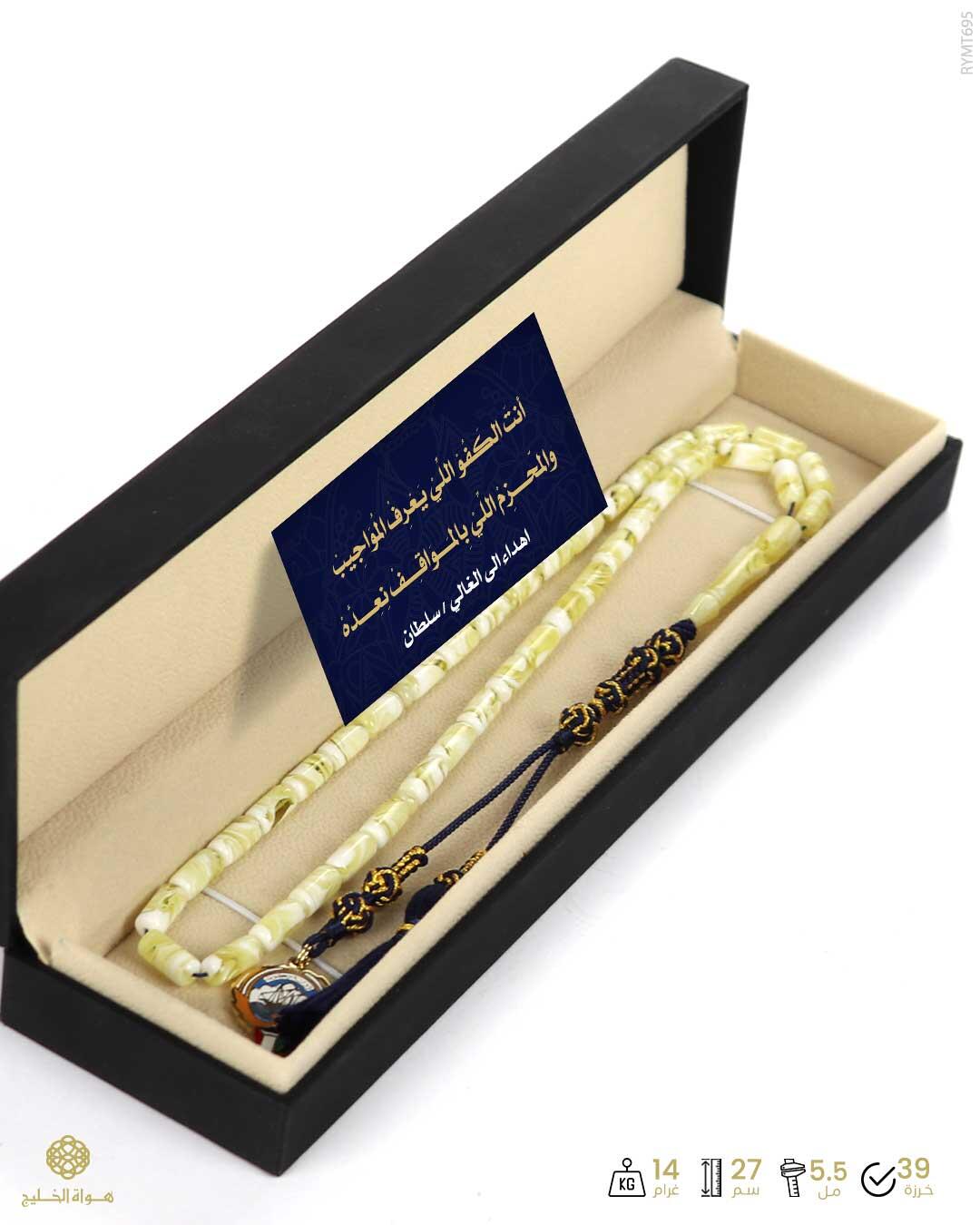 الرئيسيةمسباح مستكة كهرماني مسباح مستكة كهرماني 0الوصفمسباح من المستكة لونه كريمي معرق بعدد 39 خرزة طولية يتألق بكركوش فاخر محبوك يدوياًمن اجود الخيوط مزين بشعار من اختيارك محفور على الوجهين يقدم بعلبة هدايا أنيقة مع كرت إهداء فخم