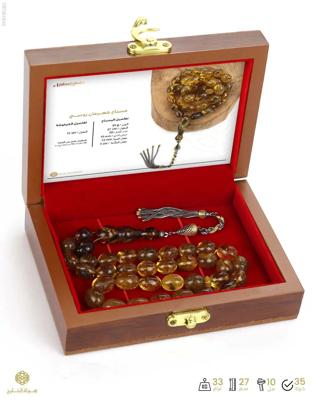الرئيسيةكهرمان روسيكهرمان روسي0الوصفمسباح من الكهرمان الروسي عسلي شفاف مشوب بالبني بعدد 33 خرزة بيضاوية متوسطة فوّاحة بالعنبريتألق بكركوش فاخر من الفضة الايطالية 925 المشغولة يدوياً نقدم المسباح في علبة خشبية فاخرة للحفظ و الإهداء