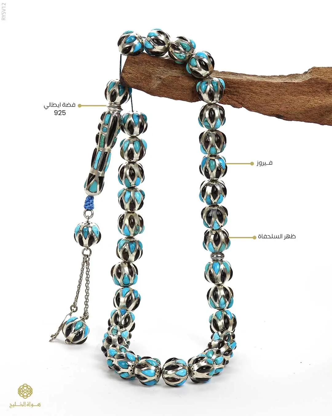 قطعة فنية من الفضة الإيطالية عيار 925، مطعّمة بظهر السلحفاة الطبيعي مع لمسات من حجر الفيروز، بتصميم مميز يعكس تناغم الألوان ودقة التفاصيل
