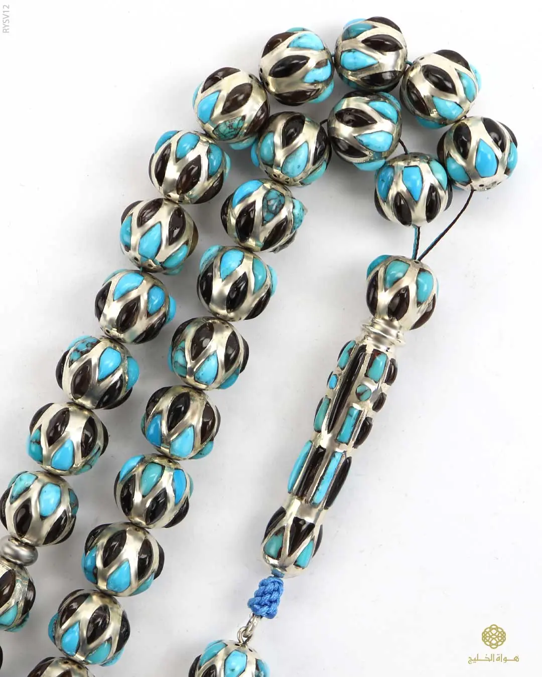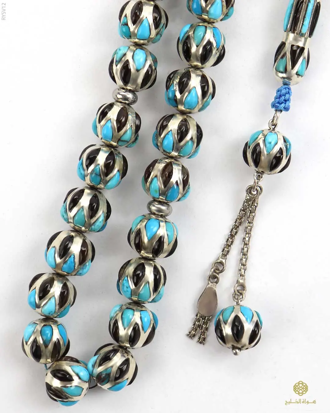 يمنحها حضوراً راقياً، يتميّز المسباح بتصميم منحوت وتشطيب متقن مع كركوشة فضية أنيقة