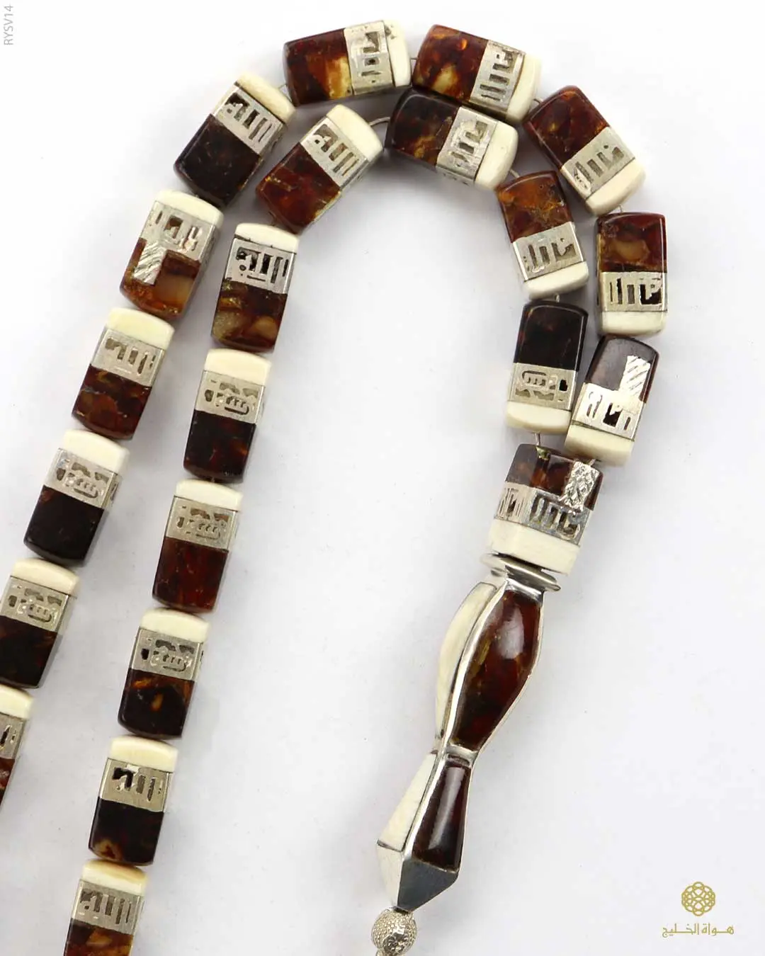 يمنحها حضوراً راقياً، يتميّز المسباح بخرز صندوقي بطابع عصري وتشطيب متقن مع كركوشة فضية أنيقة