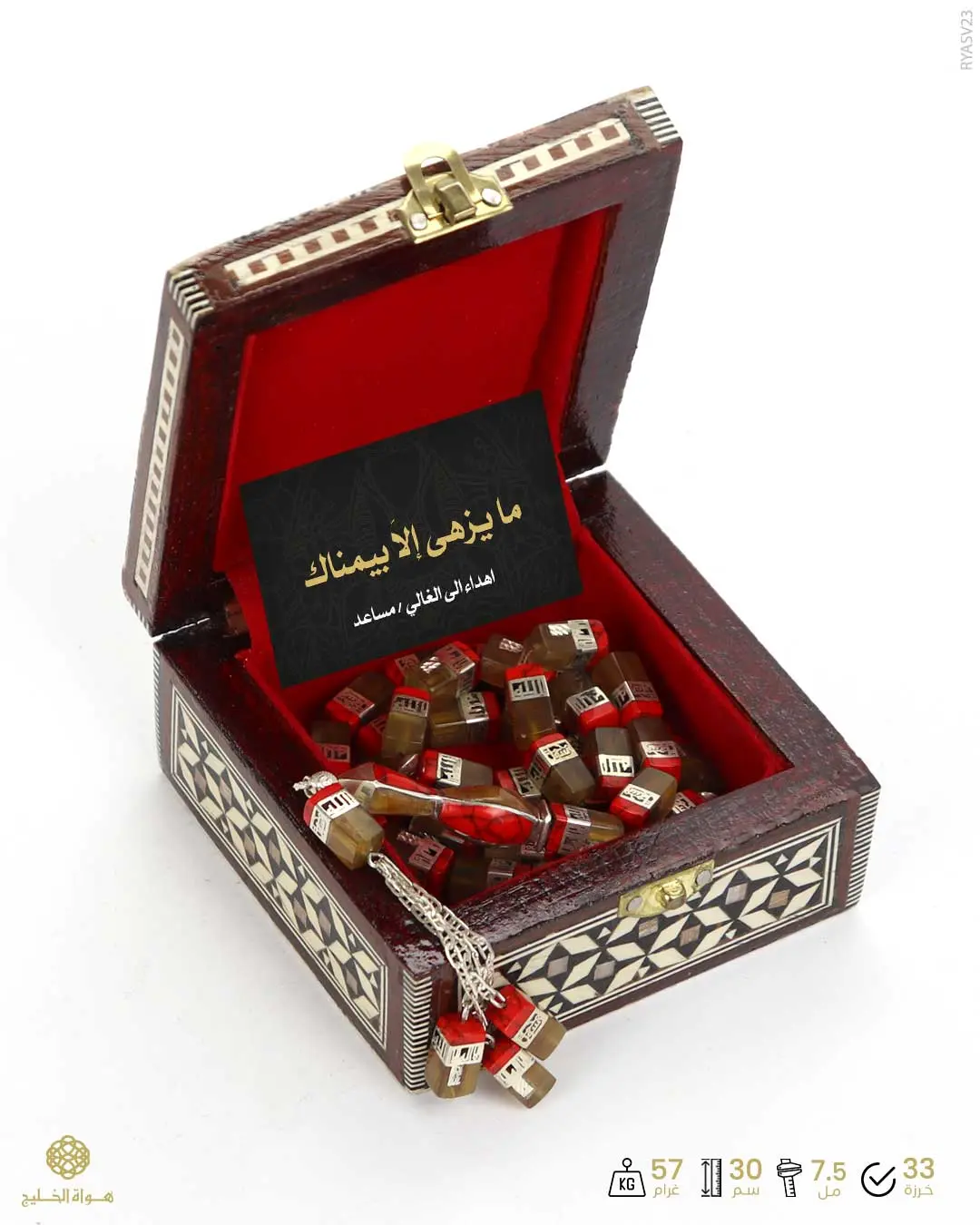 يمنحها حضوراً راقياً يتميّز بخرز صندوقي بطابع عصري وتشطيب متقن مع كركوشة فضية أنيقة، يُقدّم بعلبة فاخرة