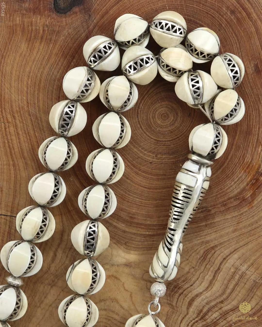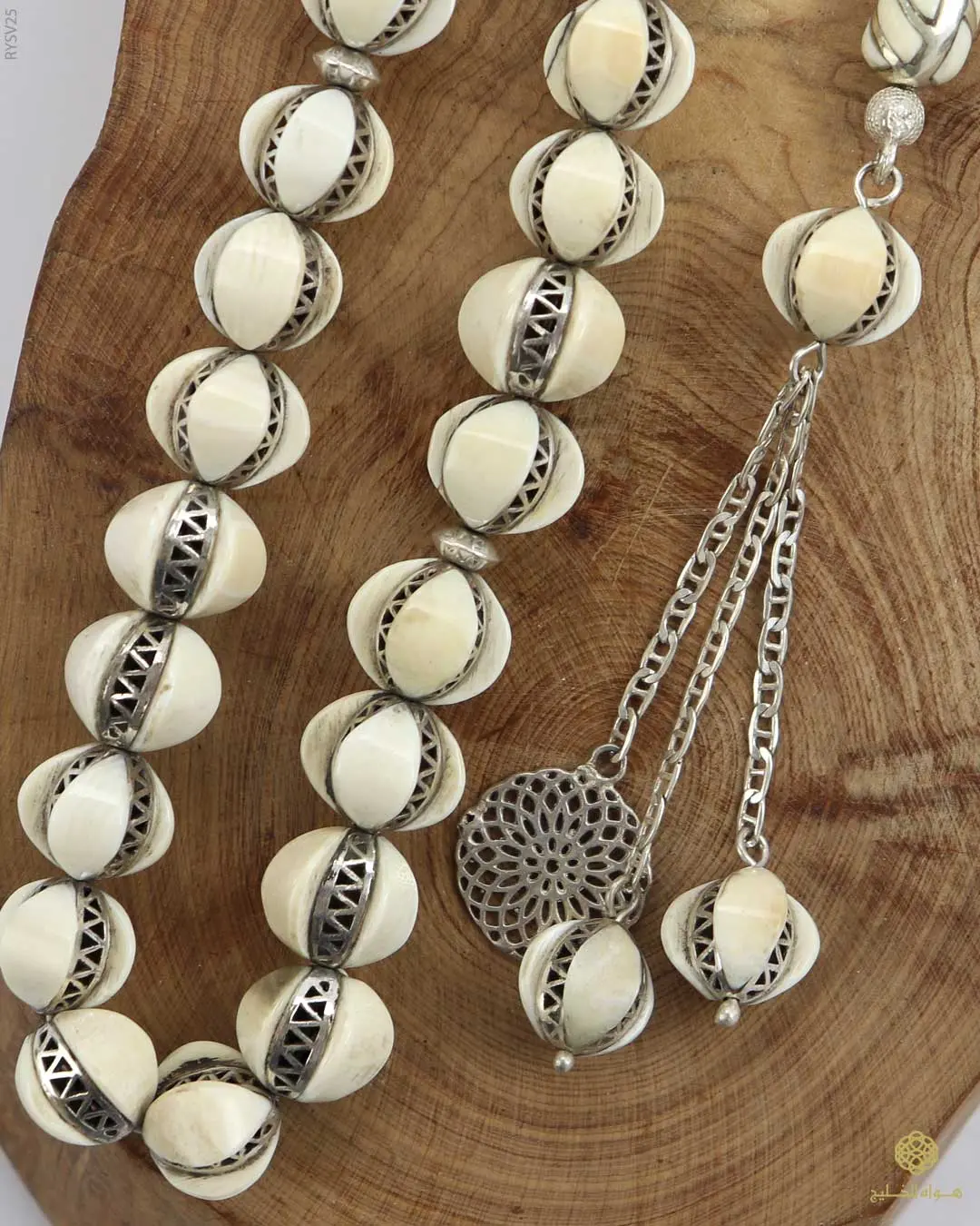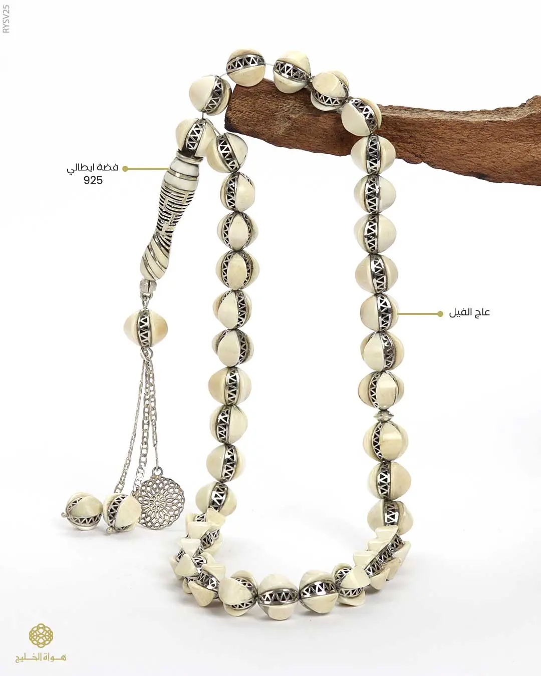 قطعة فنية من الفضة الإيطالية عيار 925، مطعّمة بعاج الفيل الطبيعي بتصميم متقن يعكس نقاء اللون ودقة التفاصيل