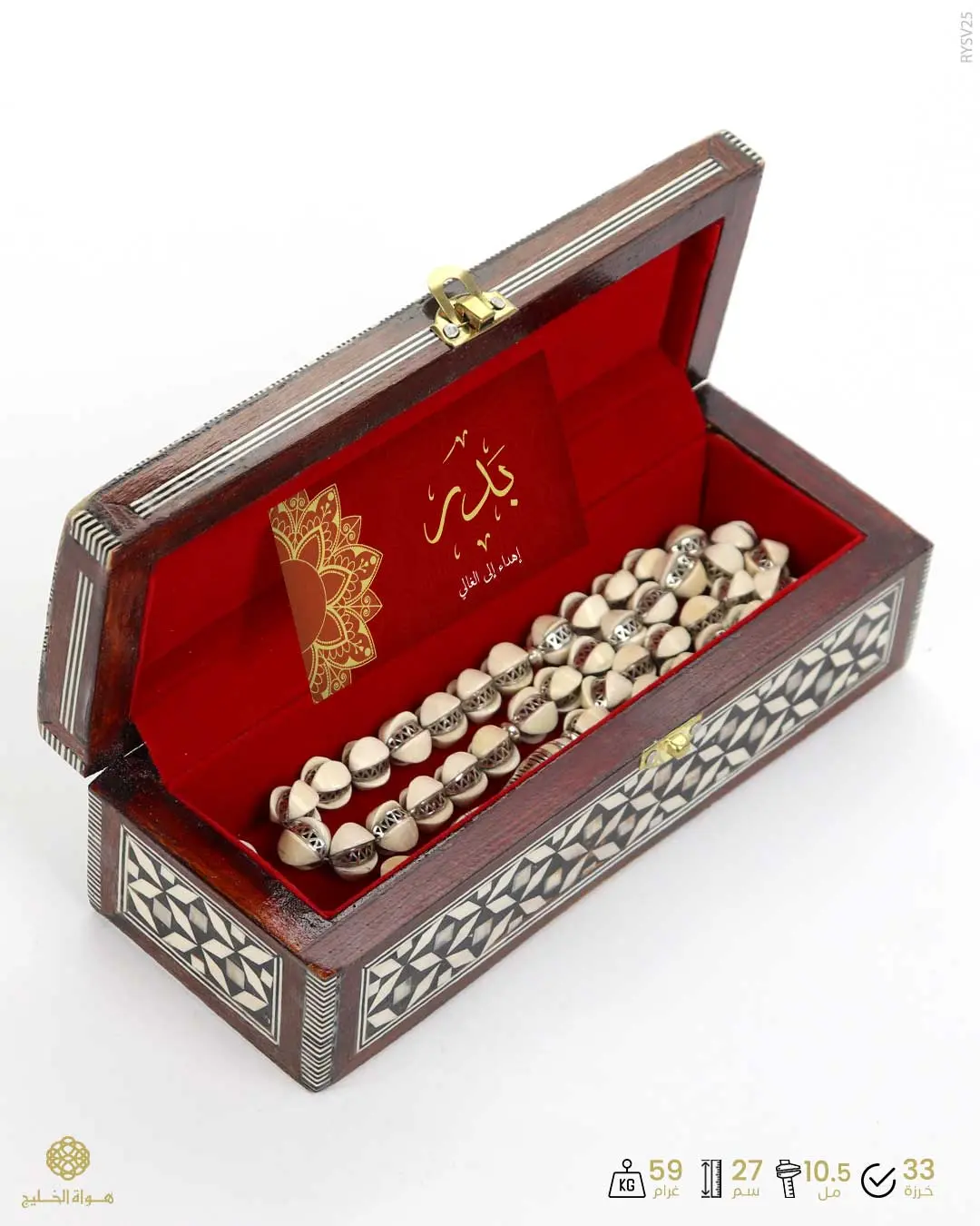 يُقدّم بعلبة فاخرة من الصدف مع كرت إهداء، ليكون خياراً مثالياً للاستخدام أو كهدية مميزة