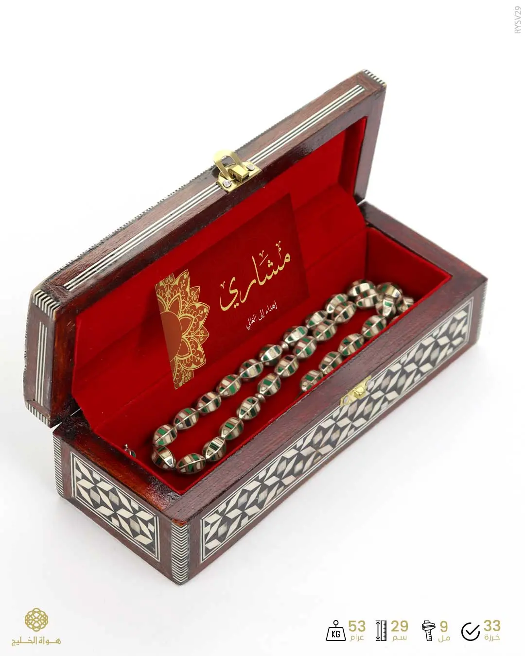 يقدم بعلبة فاخرة من الصدف مع كرت إهداء، ليكون خياراً مثالياً للاستخدام أو كهدية مميزة